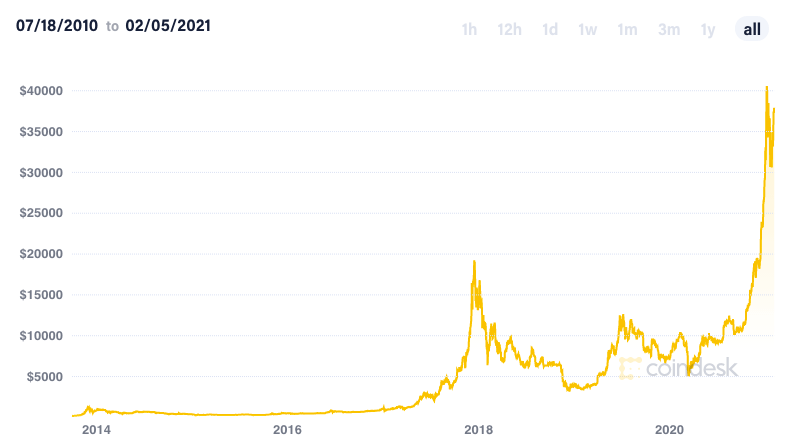 It is scarce and the increasing demand for it has caused its price to increase over time. There are only 21 million bitcoins that can ever be mined. 18.5 million of those have already been mined. In 2011, 1 bitcoin was worth $0.30. Currently, on Feb. 5th, 2021, it is worth $38,698 USD. Last month, it reached its all time high of $41,940 USD.